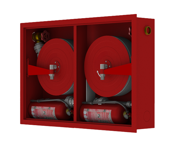 The double-door and double-reel fire hose cabinet is designed as a fire safety equipment to provide quick and effective response in fire situations. It is made from high-quality materials, ensuring durability and long-lasting use. Double-door fire hose cabinets, designed for fire safety, offer an optimal solution with their high performance and durability.