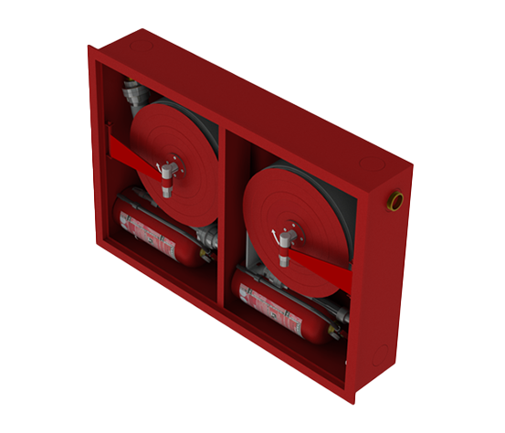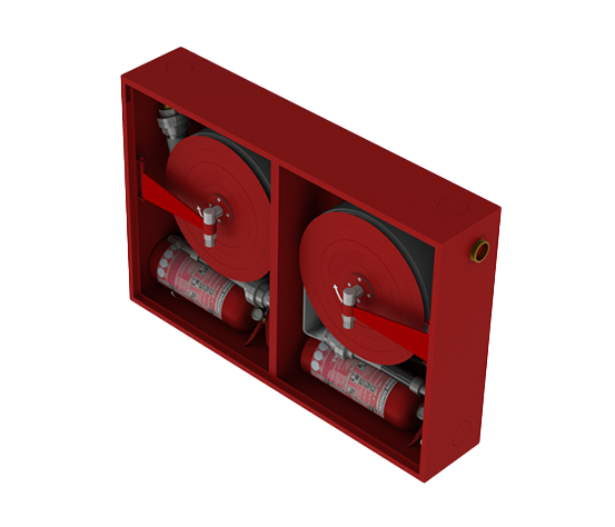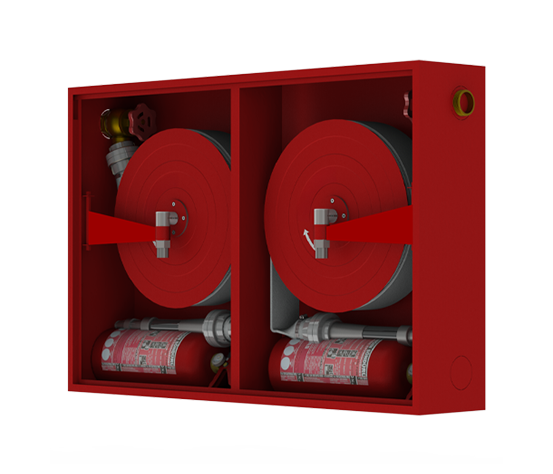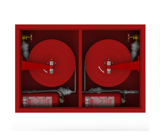 The double-door and double-reel fire hose cabinet is designed as a fire safety equipment to provide quick and effective response in fire situations. It is made from high-quality materials, ensuring durability and long-lasting use. Double-door fire hose cabinets, designed for fire safety, offer an optimal solution with their high performance and durability.