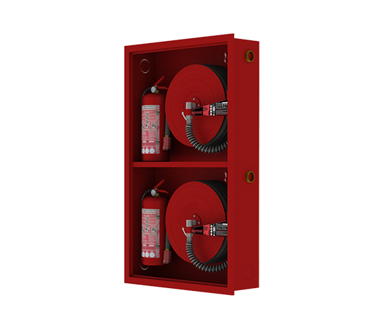 Single-door or double-door, surface or recessed mounted fire hose cabinets are offered with various door types, providing solutions suitable for different needs and usage areas. They are commonly preferred in indoor and outdoor spaces, areas requiring high security, industrial facilities, warehouses, places where visual inspection is crucial, shopping malls, hotels, offices and schools.
