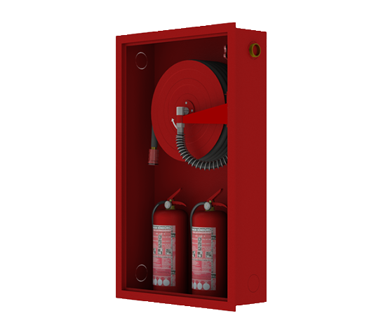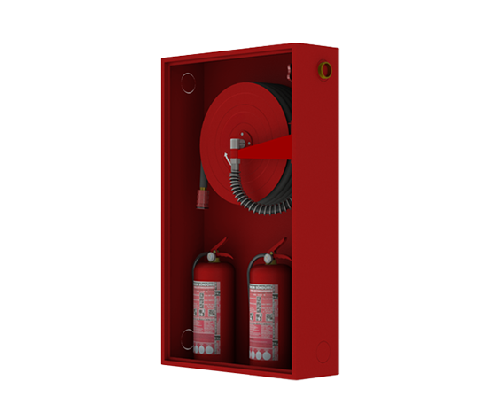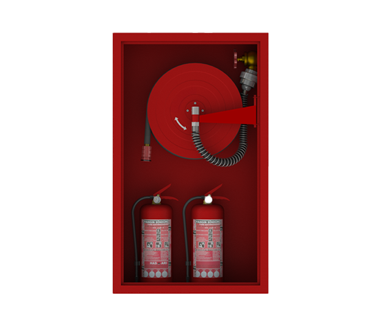 Single-door, surface or recessed mounted fire hose cabinets are offered with various door types, providing solutions suitable for different needs and usage areas. They are commonly preferred in indoor and outdoor spaces, areas requiring high security, industrial facilities, warehouses, places where visual inspection is crucial, shopping malls, hotels, offices and schools.
